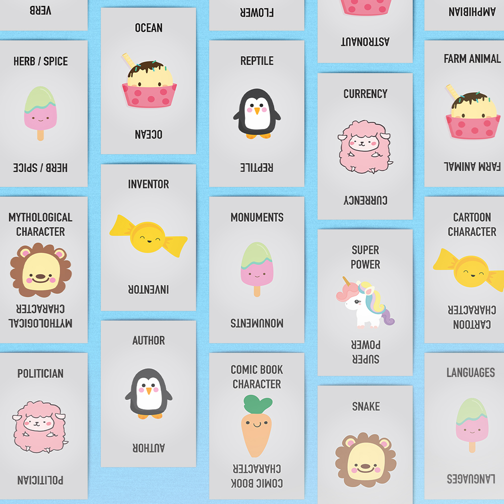 Content: 123 Category Cards & Wild Cards in 2 boxes + Rule Sheet.