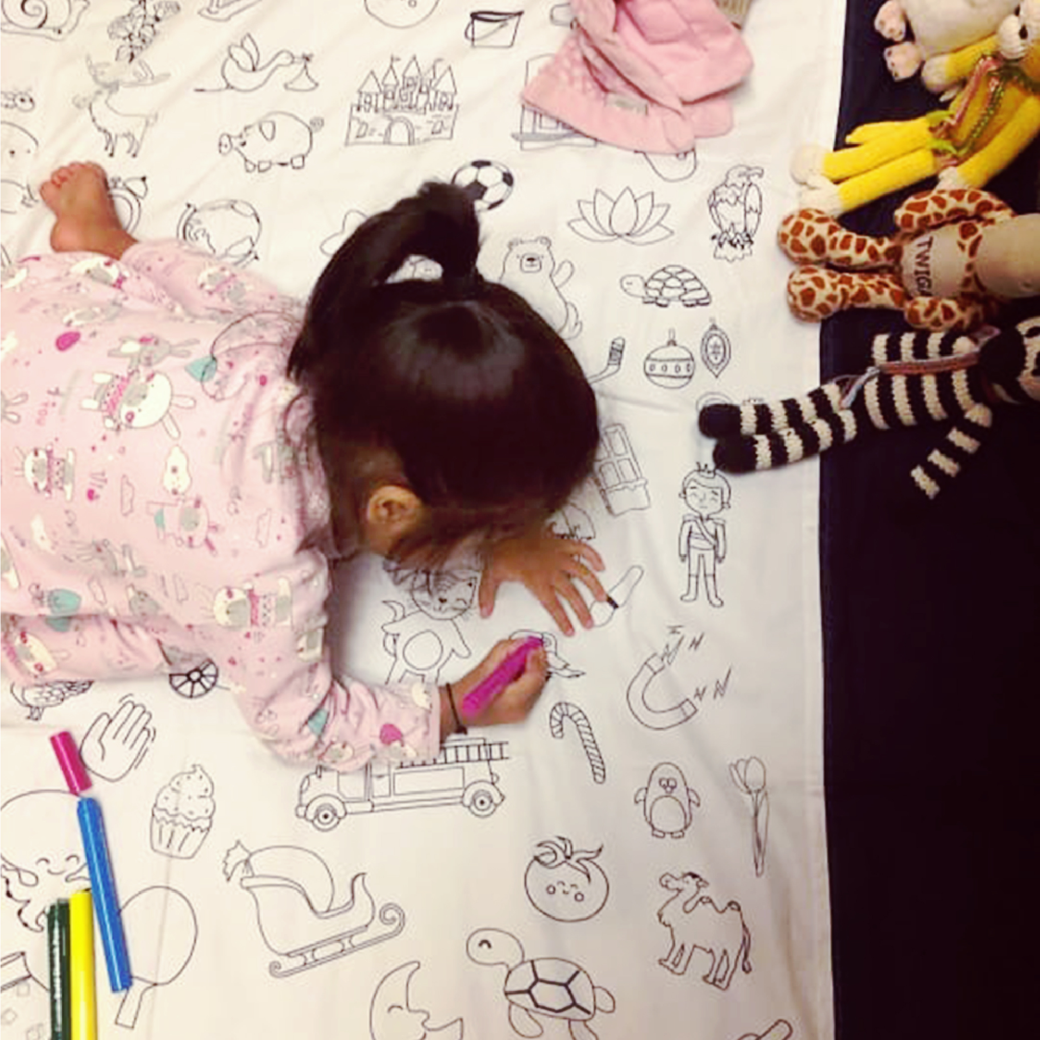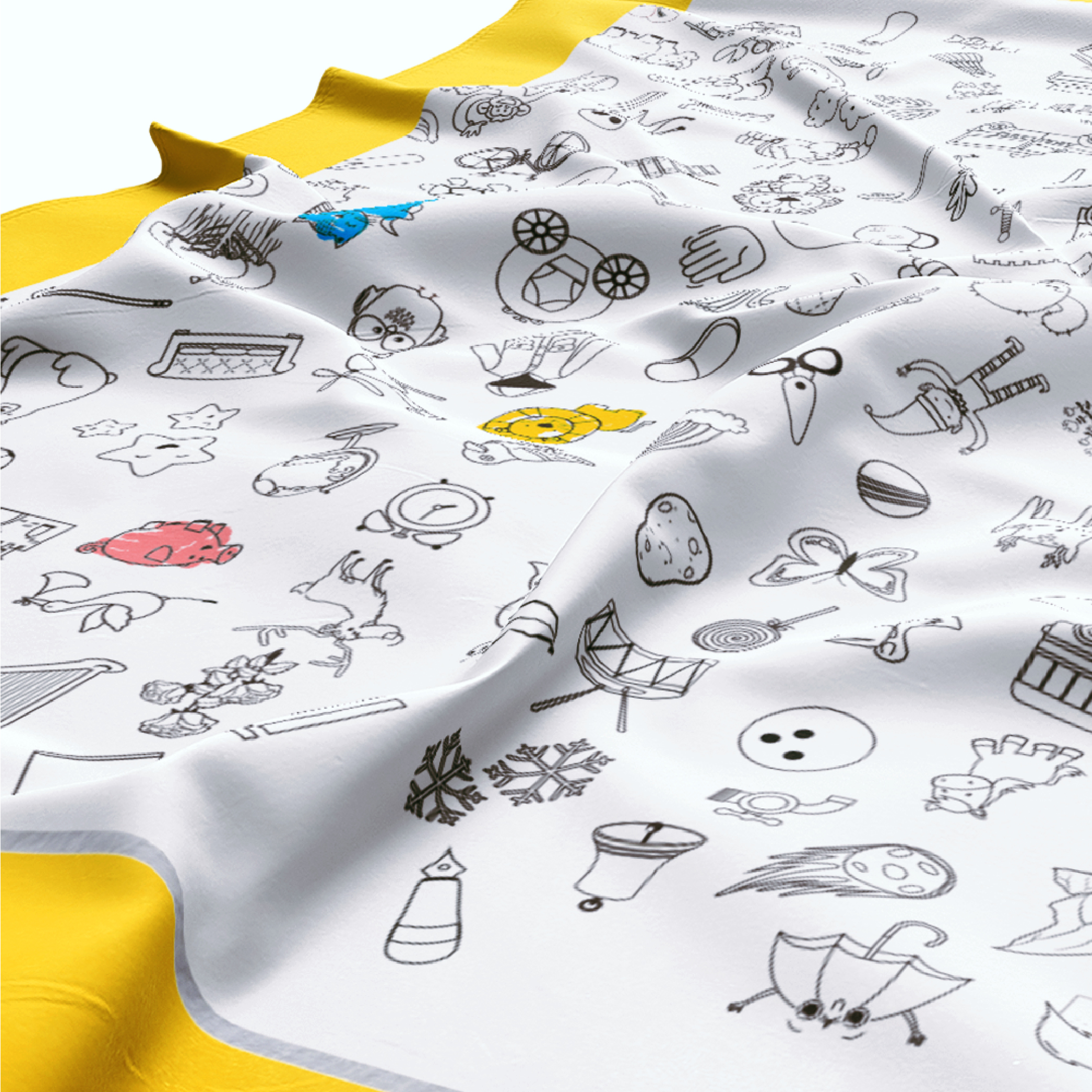 The Spotted! Bedsheet is a massive canvas filled with doodles. Accompanying the bedsheet is a set of our Spotted! Cards and a set of washable stationery. This bedsheet can be used differently for children of different ages. We’re making home a brighter place. One coloured doodle at a time.